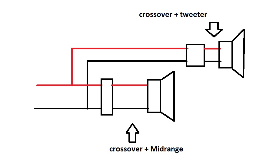 Nel senso che il segnale in ingresso del passa banda sarà lo stesso di quello del passa alto. L'uscita del passa banda andrà solo al midrange e l'uscita del passa alto solo al tweeter
