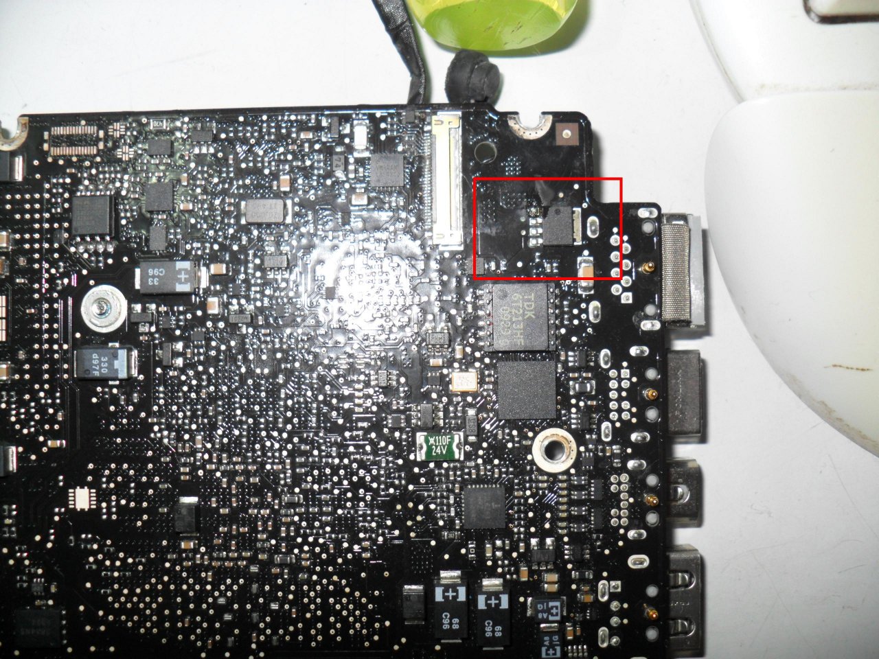 Dovrebbero averci fatto cadere dell'acqua, ispezionando, per ora ho trovato solo questo con un piedino saltato.