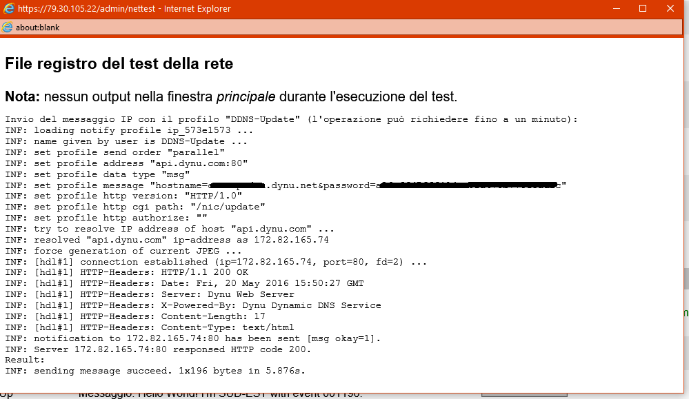 Questo test di notifica IP dà sempre esito positivo anche se il formato inviato al server api è errato , ma risulta essere importante ai fini del debug permettendo di provare senza dover attendere la temporizzazione o effettuare riavvii!