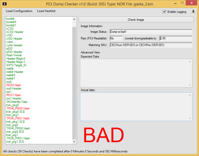 cmq fai cosi se vuoi patchare il tuo dump apri il programma ctrl+f12 e disabilita enable hash checks