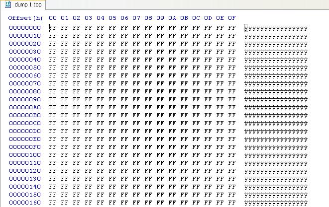 Ho un progskeet solderless ma quando vado a leggere le nand della mia ps3 cechg04 l'operazione sembra andare a buon fine (nessun errore di verifica ) ma il dump anche se i valori 00 e FF rientrano nelle tolleranze richieste nella [URL="http://www.ps3devwiki.com/wiki/Validating_flash_dumps"]tabella[/URL] del ps3devwiki risulta (in entrambi i dump) che all'Offset 00000000 vi sono tutte FF FF FF come in figura: