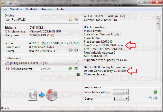 Avviamo IMGBurn e controlliamo nelle impostazioni se vi sono i seguenti dati: