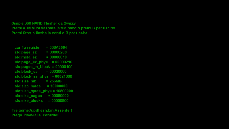In seguito alla pubblicazione di poche ore fa NandFlasher_xex , Swizzy ha preso il codice sorgente e ha pubblicato Simple 360 NAND Flasher.