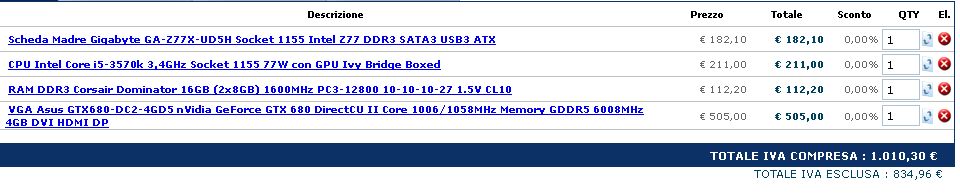 Vedi questa configurazione devi solo decidere il box, l'ali e la configurazione degli hd e masterizzatori.