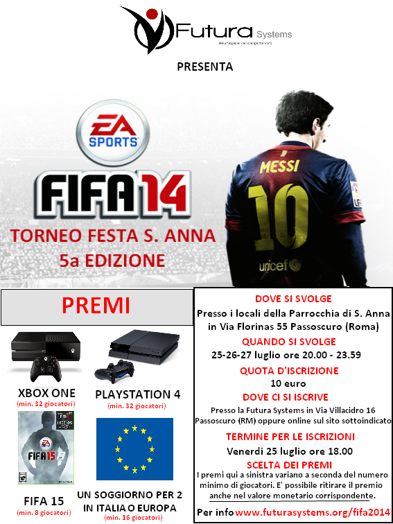 ciao ragazzi, sto organizzando per la parrocchia del mio paese, in occasione della festa del Patrono, un bel torneo di fifa 2014.Allegato 17530