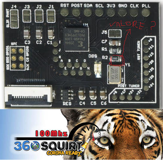 per capirci squirt 360 2.0 r2 abilita il clock a bordo se elimini la r2 de collegare il filo del clock sto eseguendo rgh2 su xbox 360 jasper