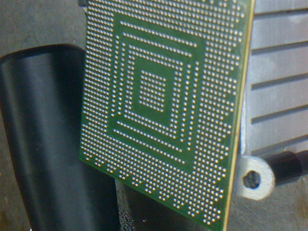A me alcuni sono usciti cosí quando le ho staccate dalla maiboard ed è stato per il pre a 140º..addirittura nei vari test, una volta ho provato a non usare nessun flussante, staccando il bga vidi le sfere non unite e l'ho risaldato cosí cm stava e la mobo è partita(lo so è stato da killer quel test)