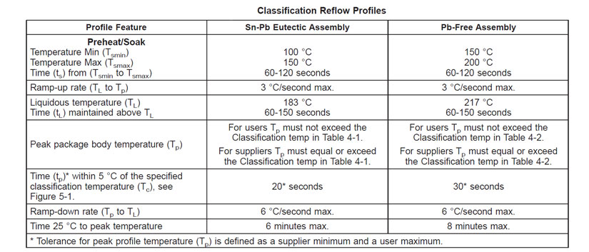 i soggetti devono essere sottoposti ad almeno 3 cicli per le condizioni di reflow adeguate, definite nella Tabella. Se la temporizzazione