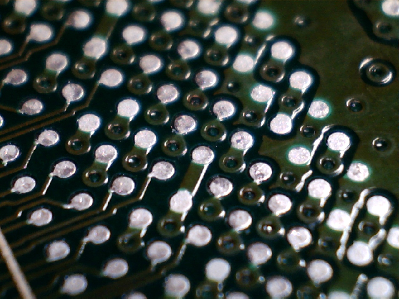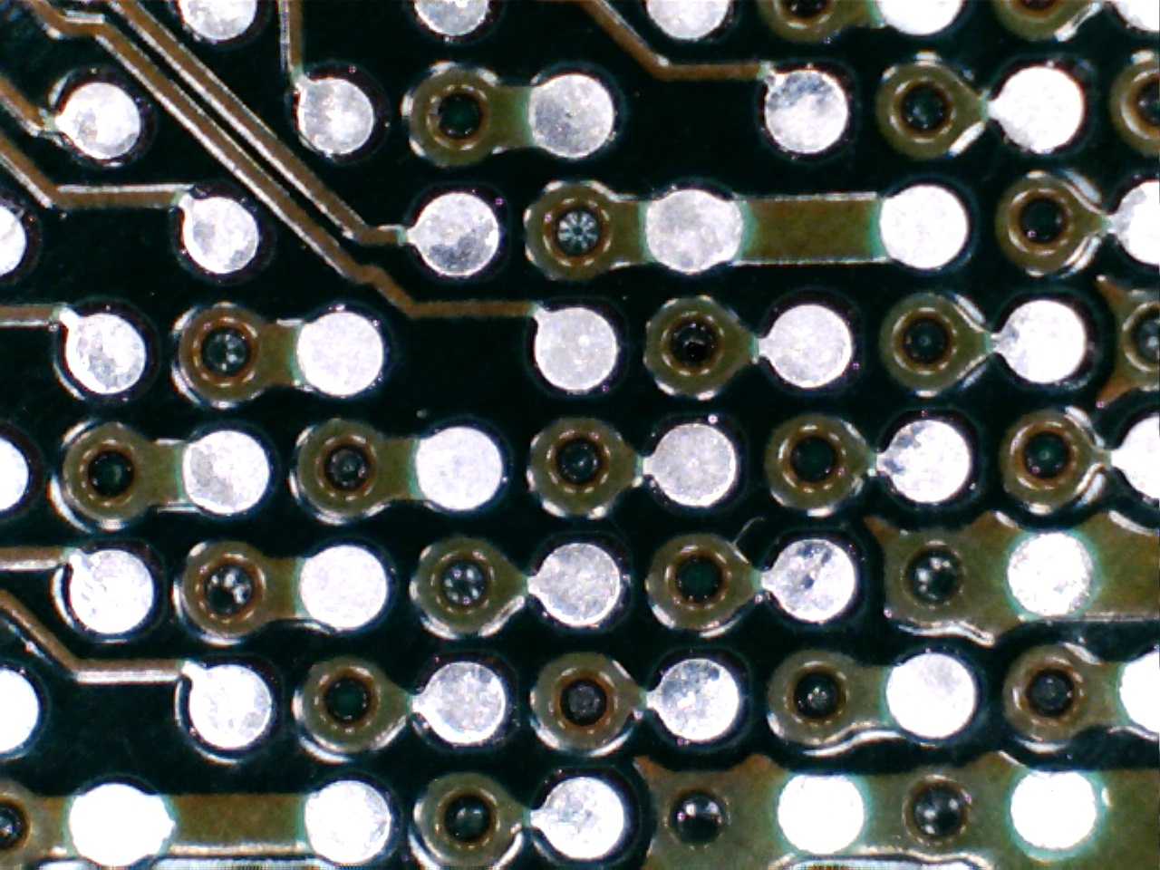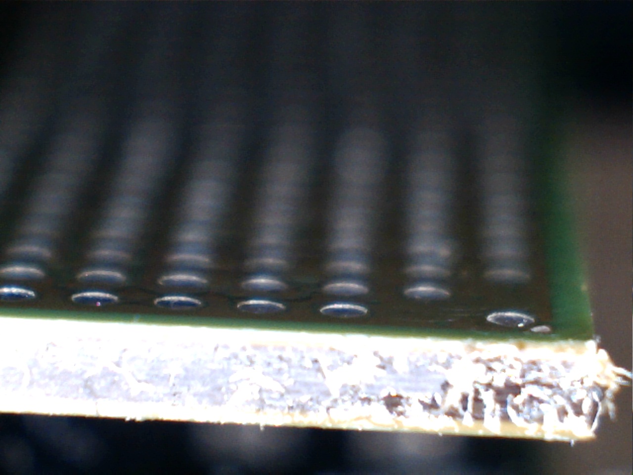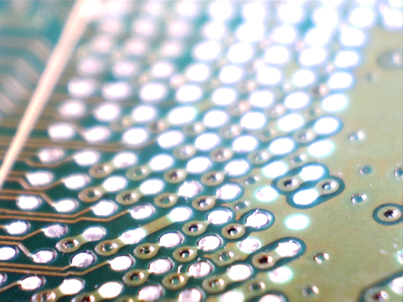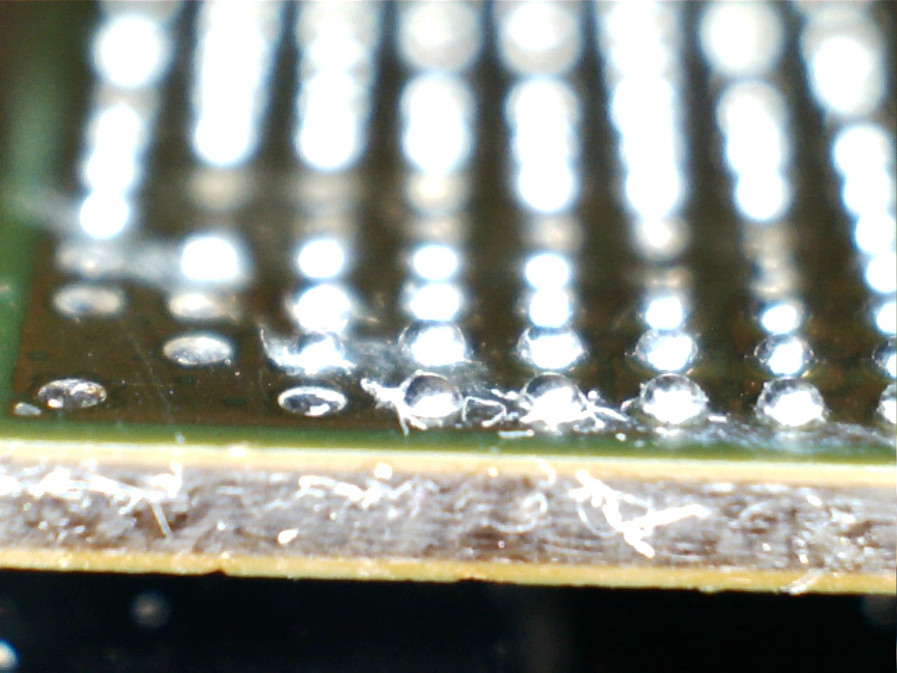 Dalle foto 1 a 6 potete notare in maniera più rilevante come è fatta una piazzola su una scheda madre. La piazzola in metallo ha un margine sottile nella circonferenza interna dove non c'è ne metallo e ne solder masck. La vernice applicata fa un piccolo spessore mentre la piazzola che non è stata verniciata rimane giu. In quieste foto ho pulito la mobo con una spatola in silicone.