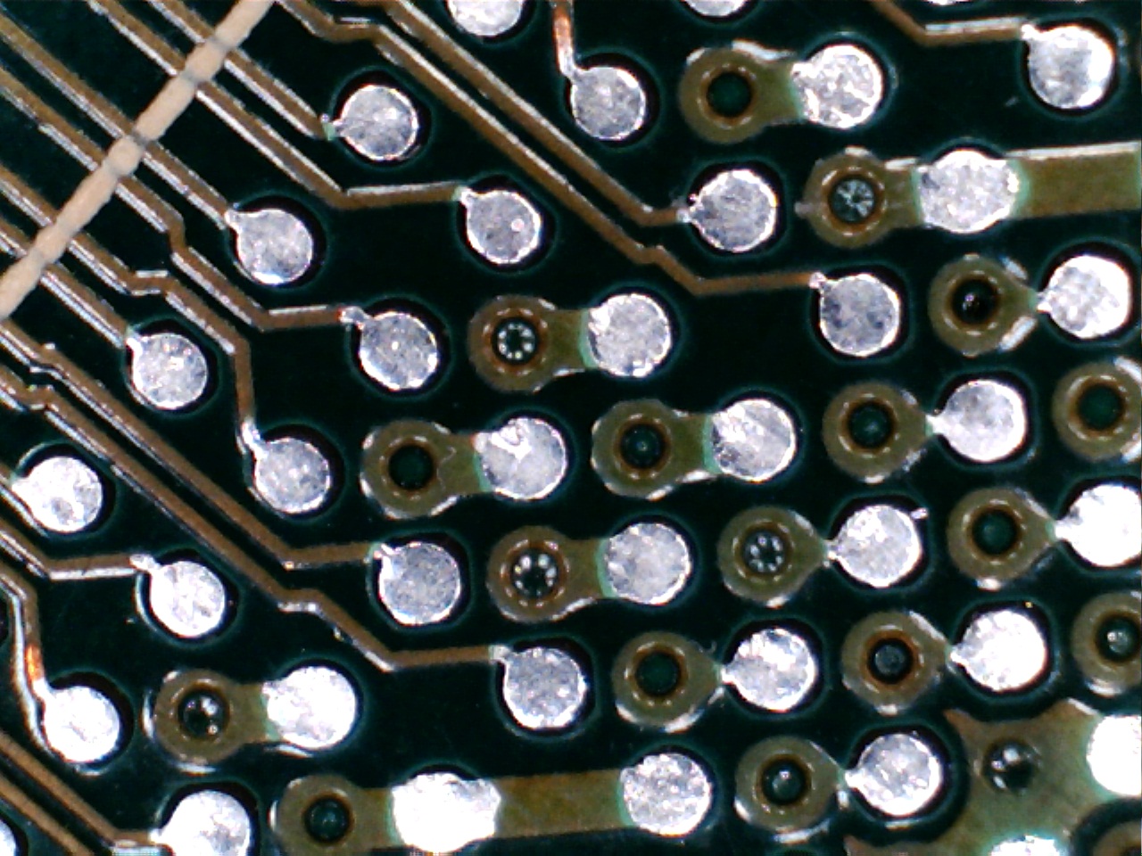 la pulizia è ottima, mi raccomando metti flussante la giustà quantità, non abbondare che non ha senso. Metallizza prima di pulire con la trecciola con è pallozze di piombo se reballi al piombo cosi mischi il rimanente della lega e pulisci meglio le piazzole dopo. Le sferette non si sono saldate forse per 2 motivi e sono: