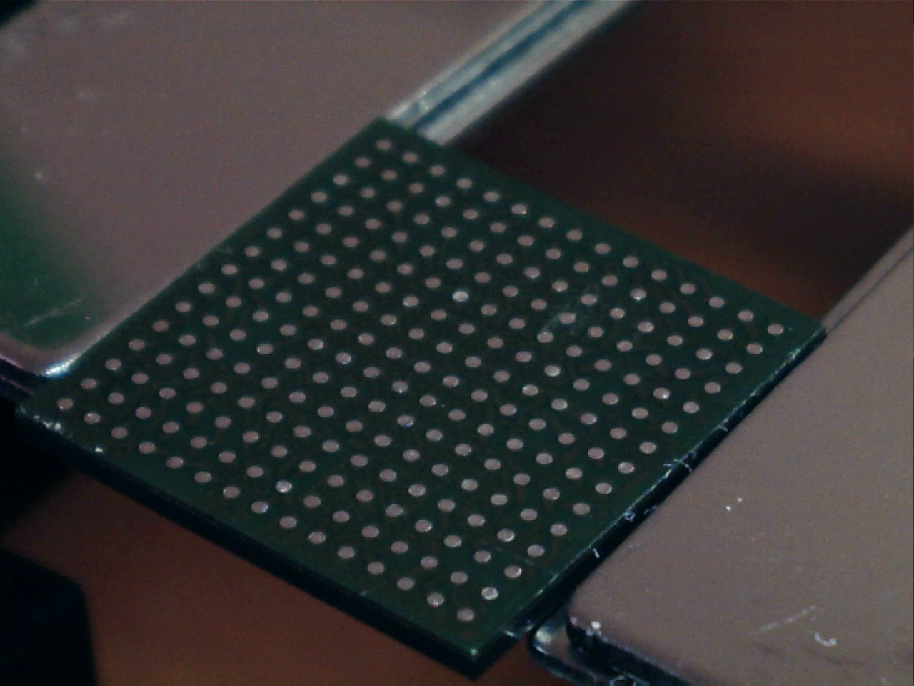 Questa invece è il primo piano del chip ripulito. Lo è abbastanza? Considerate che anche qui le palline si sono spostate con l'aria calda