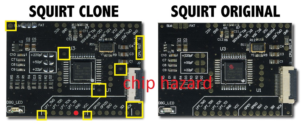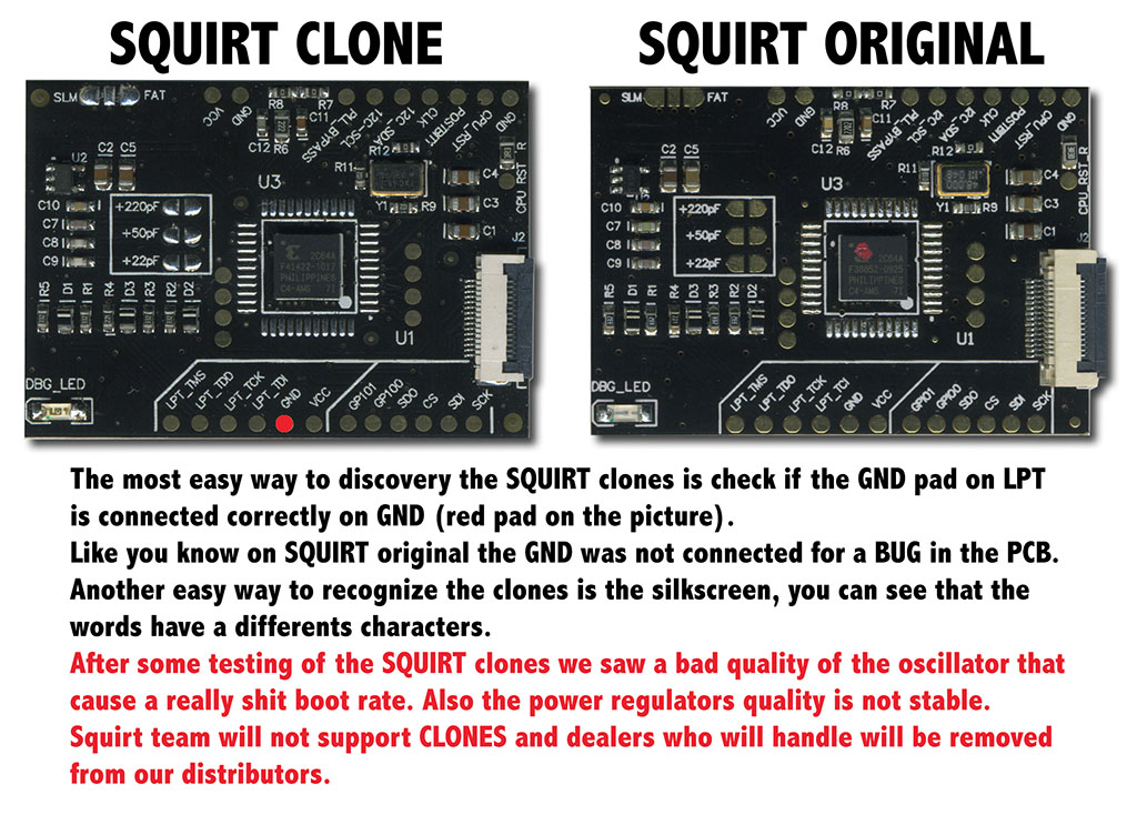 Stanno girando anche cloni squirt con xilinx NON BGA onboard, sei sicuro che il tuo squirt abbia il BGA ??
