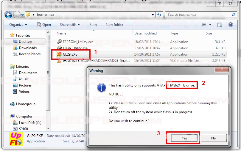 Lanciamo l'eseguibile del nostro lettore (nel mio caso GL29.EXE), nella finestra che si apre controlliamo che la versione sia corretta e clickiamo su Yes: