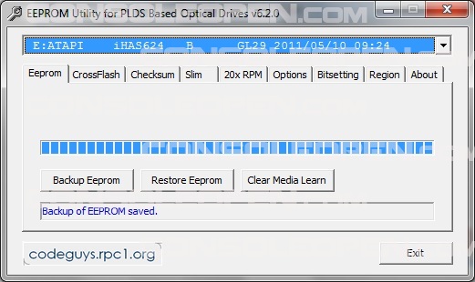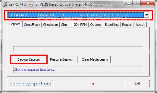 Lanciamo il programma Eprom_utility, assicuriamo che sia selezionata l'unità corretta , e clicchiamo su backup eprom: