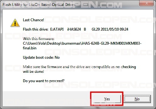 Confermiamo un'ulteriore volta che volgiamo flashare il drive:
