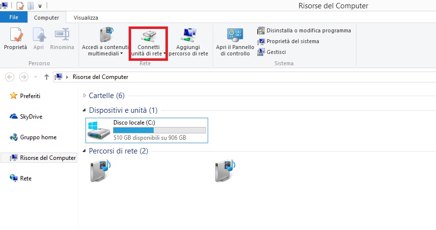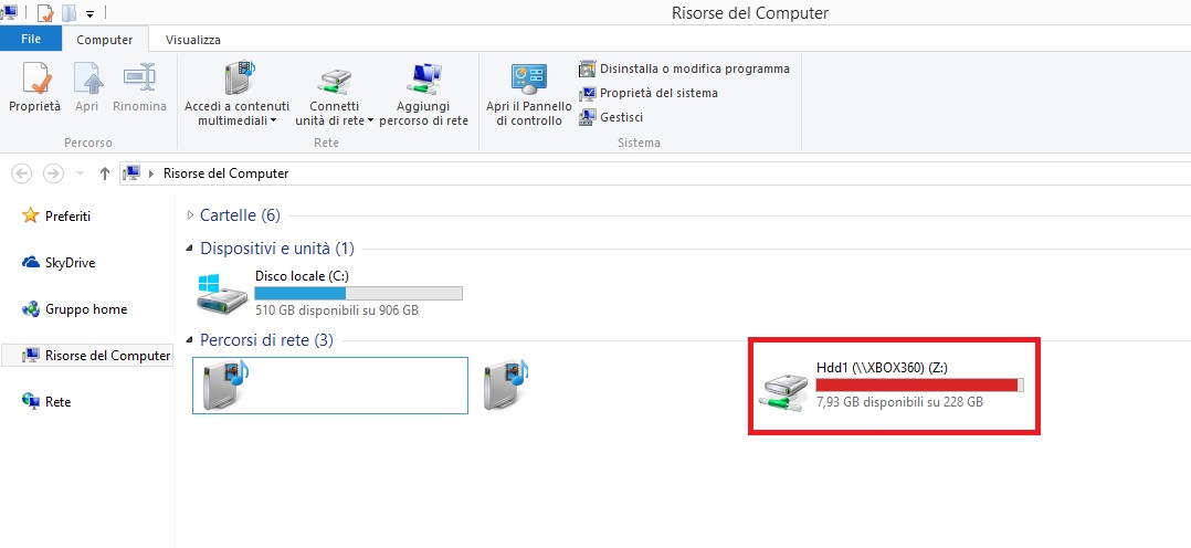 6) Con l’xbox accesa e connessa, vai su Computer, clicca su Connetti unitŕ di rete;