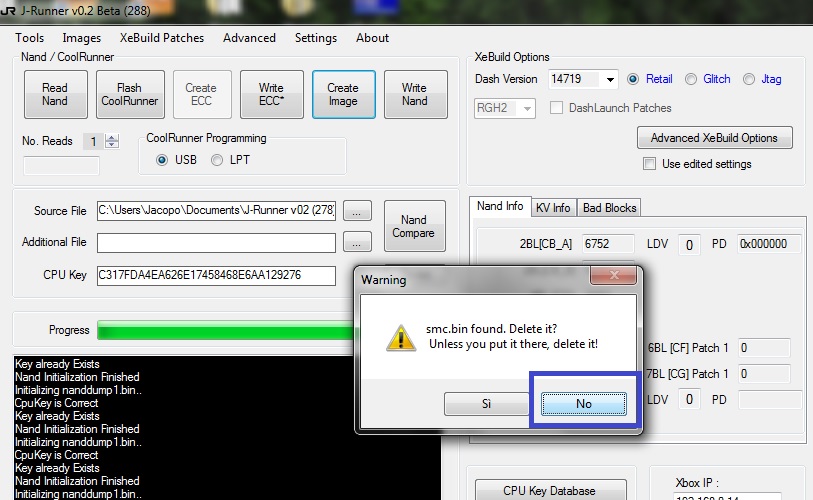 Adesso J-Runner creera' il dump originale della nostra nand che potremo riflashare tramite Programmatore, tramite Xell, od ancora con Simple Nand Flasher 1.2