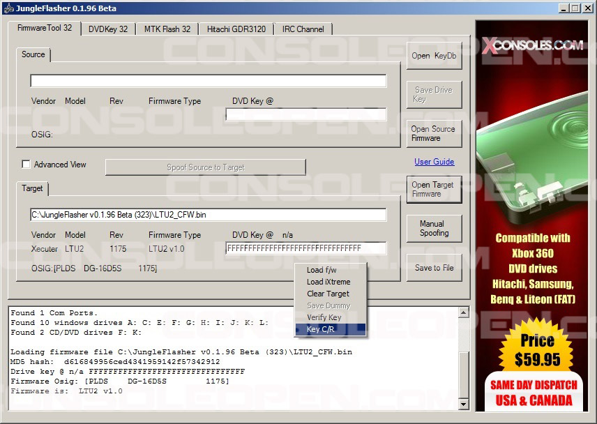Adesso,come un normale Liteon Fat, andiamo a cancellare la MT e [URL="http://www.consoleopen.com/forum/tutorial-lizard/107-lizard-guida-allhack-dei-lettori-liteon-con-lultimo-ixtreme-lt-plus.html"]scrivere il CFW[/URL] appena generato: