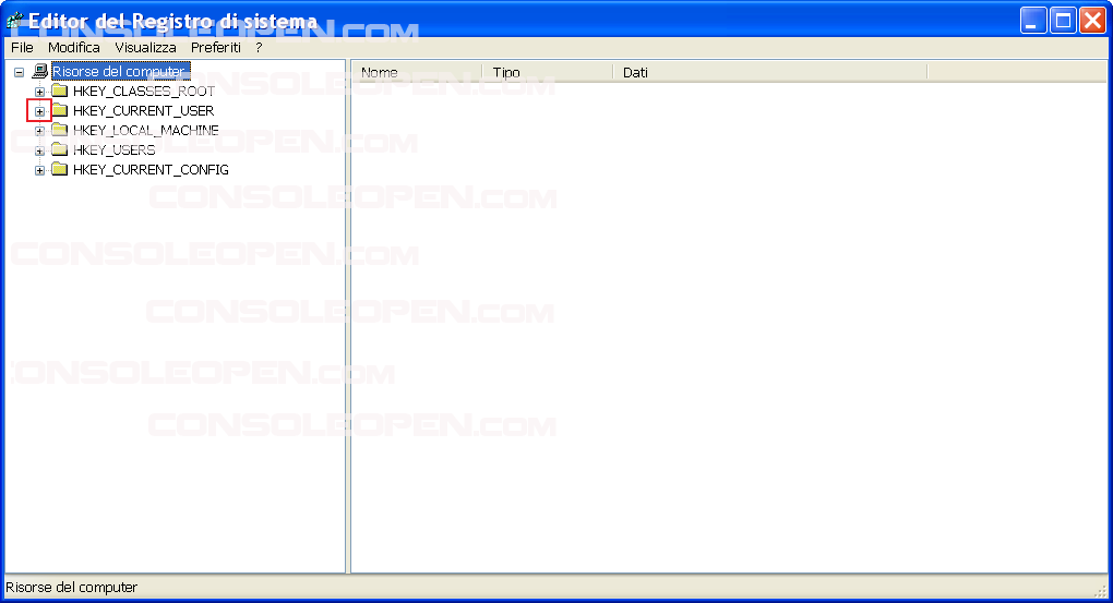Selezioniamo con il + vicino a HKEY_CURRENT_USER