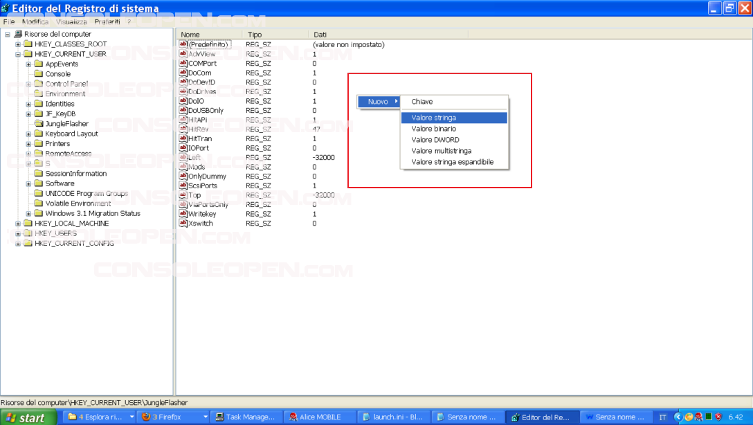 Nella parte destra del registro di configurazione di windows,cliccare con il tasto destro del mouse
