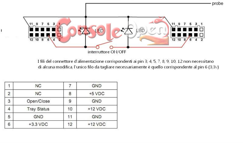 Per costruirlo basta un connettore d'alimentazione del lettore dvd, uno spillo (probe) e un interruttore, opzionali due led per segnalare la presenza e/o l'assenza della 3,3 volt.