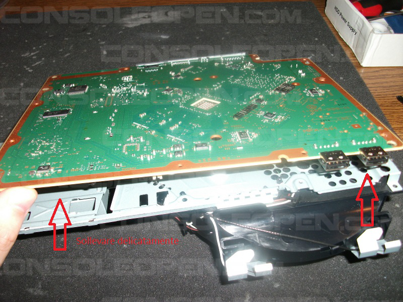 N.B.: sebbene queste console siano molto nuove e la pasta termoconduttiva ancora fresca, è buona norma, una volta distaccato il dissipatore dai processori, ricordarsi di pulire la vecchia pasta e sostituirla con della nuova.