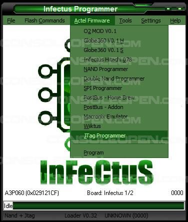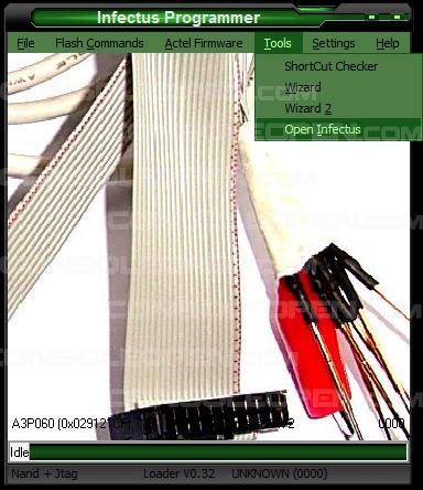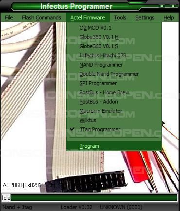2. Avviamo infectus programmer e spostiamoci nel menů in alto: Actel Firmware ----> Jtag programmer