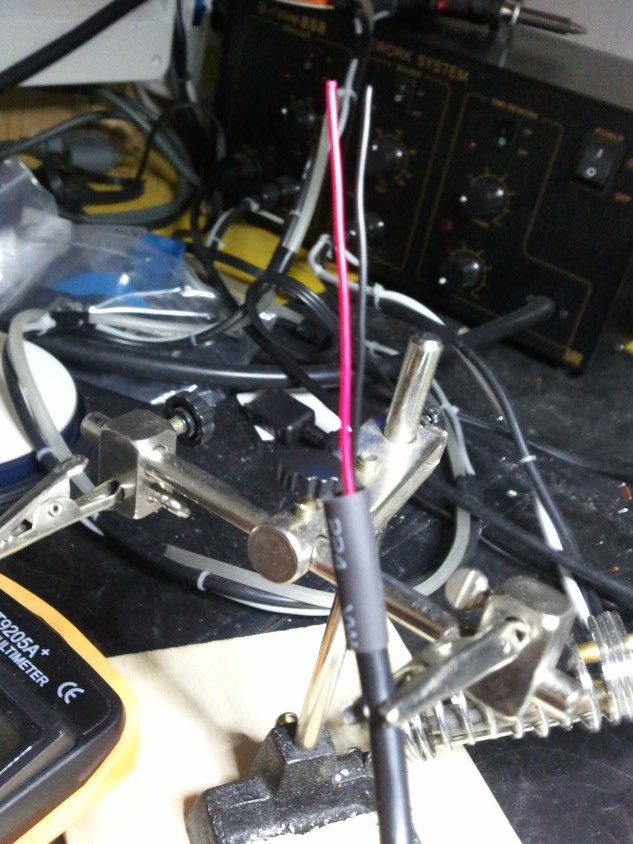 Quindi metteremo il cavo in questo modo, e con un pò di guaina restringente faremo uscire solo i due fili (potete mettere anche un pò di nastro nero :)
