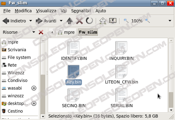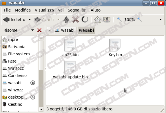 Prendete il file Key.bin e copiatelo nella cartella wasabi dove già avete copiato il file ap25.bin.