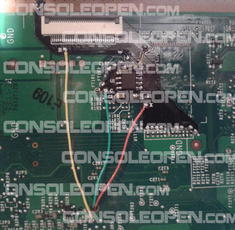 Ecco la foto dell'installazione (I fili rosso e verde che vanno verso la nand secondaria li potete anche installare, non danno alcun fastidio dato che il qsb ancora non lo avete saldato):