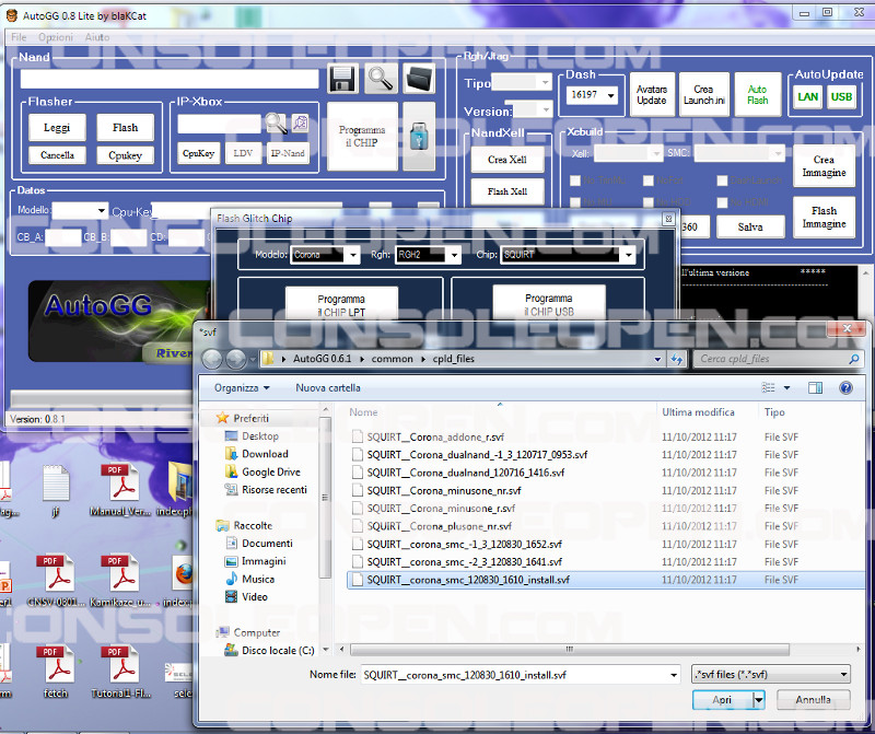 Adesso riprogrammate lo squirt con l'svf per operare la console normalmente (notate che il nome del file non finisce con install):