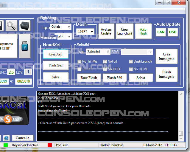 Create Xell cliccando prima su Crea Xell aspettate che il programma generi l'ecc e poi su Flash Xell