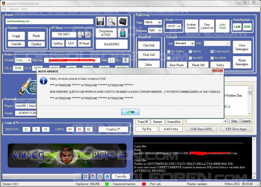 A questo punto in teoria la procedura è terminata, se colleghiamo la pendrive alla console e la riaccendiamo dal tasto eject verrà scritto sulla nand il freeboot aggiornato. Io consiglio di eseguire quest'altra piccola modifica che consente di impostare le ventole per mantenere una temperatura costante di 65° a CPU-GPU-RAM se non lo fate è consigliabile aumentare la velocità delle ventole dalle impostazioni di freestyledash...con il metodo di seguito riportato però avrete una console più silenziosa perchè le ventole aumentano solo in caso di bisogno