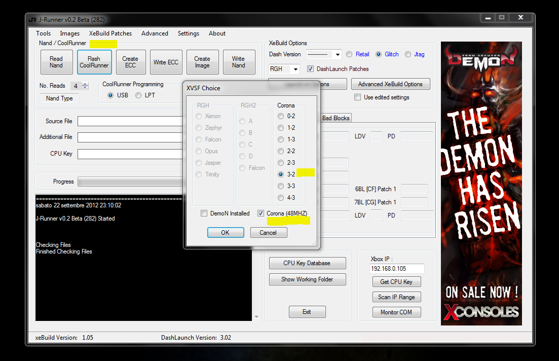 - Scrittura ECC e recupero cpu key o cliccando Scan IP Range se non conoscete IP della console, oppure Get Cpu Key se avete impostato IP nella casella di J-Runner